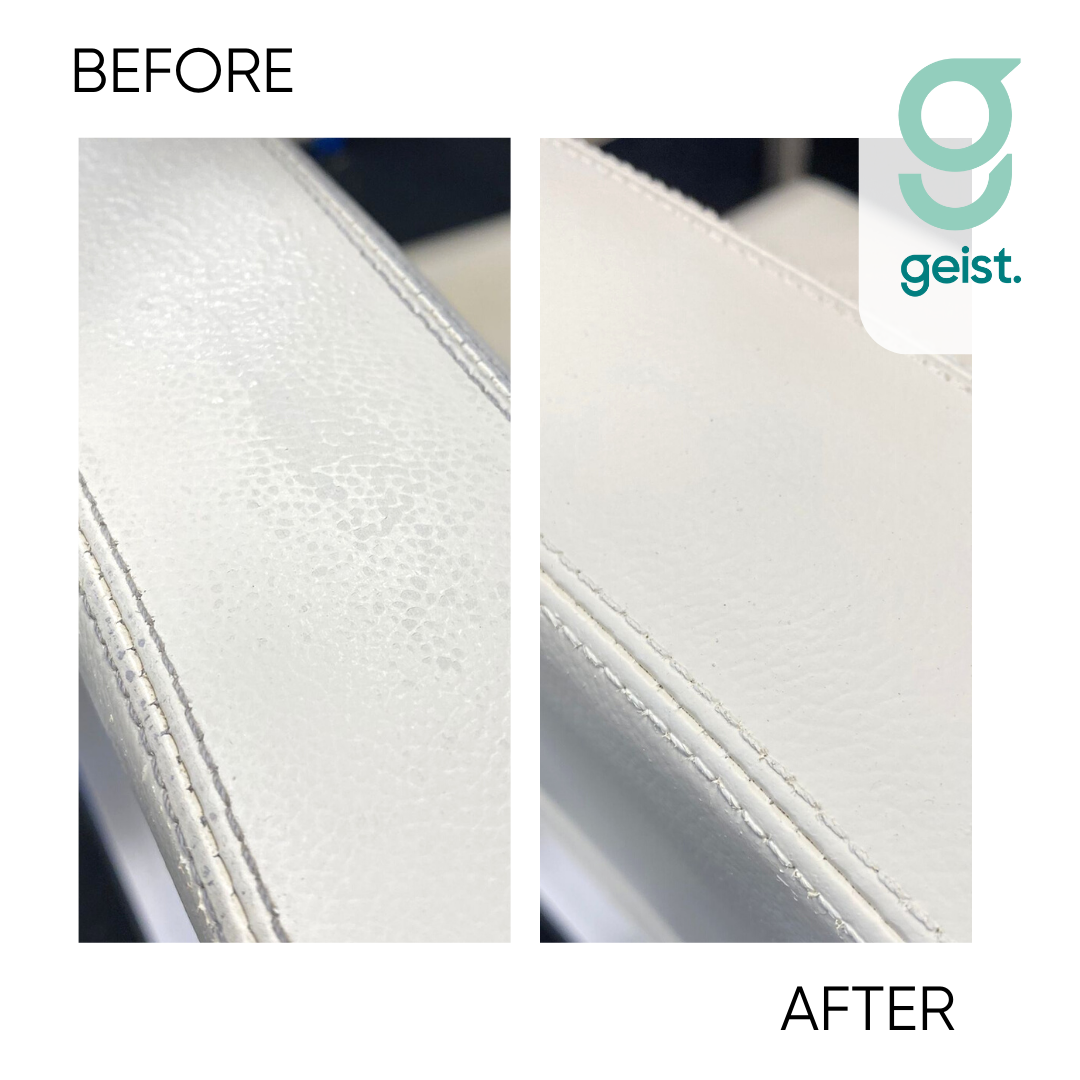 Geist. Easy Colour Restorer is perfect for refreshing the existing original colour, covering scuffs and minor scratches. Bolsters on car seats and other heavily used areas on leather furniture tend to get scuffed, over time and look tired. Friction and abrasion damage causes the top coat or clear coat to wear off and lead to colour loss.